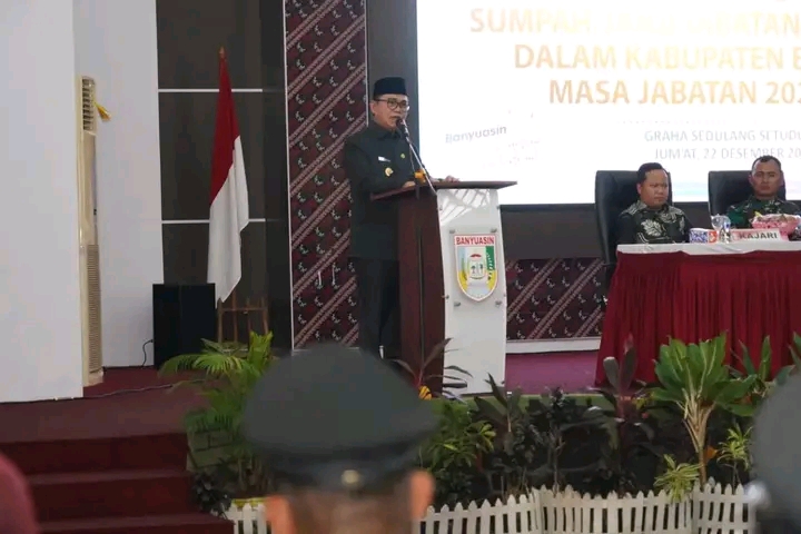 “Untuk itu, kepada kepala desa yang baru saja dilantik, 45 orang laki-laki dan 3 perempuan yang berasal dari 18 Kecamatan Kabupaten Banyuasin untuk mengabdikan hidup kepada desa masing-masing. Saya mengucapkan selamat mengemban tugas, semoga diberi kekuatan lahir batin untuk mengabdikan hidup di desa saudara/i masing-masing,” jelasnya.