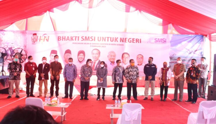 SMSI yang beranggotakan 1.224 perusahaan media siber itu memperingati HPN 2021, salah satunya dengan melakukan kegiatan bakti sosial yang meliputi pembangunan jalan dan sarana sanitasi Mandi Cuci Kakus (MCK) di Kampung Jaha, Desa Pagar Agung, Kecamatan Walantaka, Kota Serang, Banten.