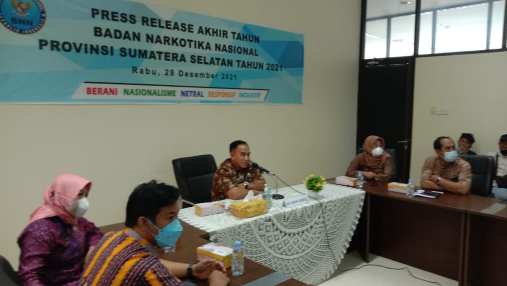 Sumatera Selatan (Sumsel) menggelar press release akhir tahun 2021, Rabu (29/12/21) di kantor BNNP Sumsel Jalan Gubernur H. A Bastari, Sungai Kedukan, Kecamatan Seberang Ulu I, Palembang. Press release dipimpin langsung Brigjen Pol Joko Prihadi SH MH selaku Kepala BNNP Sumsel.