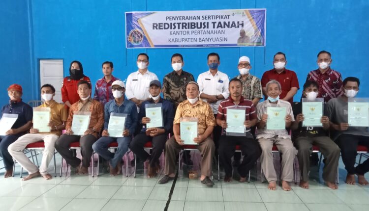 Banyuasin | Sriwijayaterkini.co.id – Badan Pertanahan Nasional (BPN) Kabupaten Banyuasin, bersama Pemkab Banyuasin melaksanakan kegiatan Redistribusi Tanah ke 89 Warga di dua wilayah, diantaranya. Desa Pangkalan Panji dan Kelurahan Kayu Ara Kuning, Kecamatan Banyuasin III.
