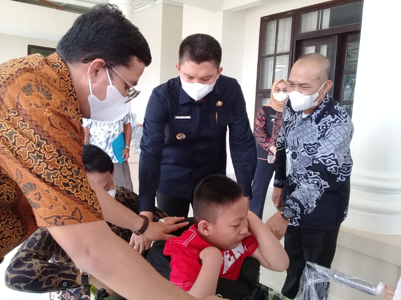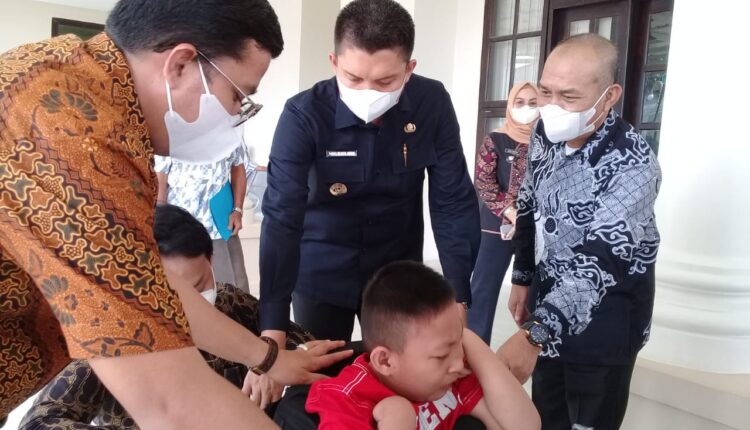 Indralaya | Ogan Ilir | Sriwijayaterkini.co.id – Bupati Ogan ilir Panca Wijaya Akbar didampingi Kepala Dinas Kesehatan serahkan alat bantu berjalan kepada Ahmad Farel Septiawan (7) pasangan dari Asepno dan Yulidar warga Desa Tanjung Seteko Kecamatan Indralaya Kabupaten Ogan Ilir.