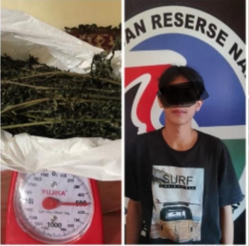 Ezkil Aldi Mahasiswa Yogyakarta Asal Pagaralam Disergap Satnarkoba Di Loker Sinar Dempo Kedapatan Membawa Ganja Pagaralam – Sungguh terlalu apa yang dilakukan Ezkil Aldi (20), mahasiswa yang tinggal di Simpang Manna, Kelurahan Beringin Sakti, Kecamatan Pagaralam Selatan, Kota Pagaralam, Sumatera Selatan (Sumsel). Bukannya serius menimba ilmu saat dikirim kuliah di Yogyakarta, Ezkil Aldi justru menyalahgunakan kepercayaan kedua orangtuanya. Ezkil Aldi mengedarkan daun ganja di tempatnya belajar di Yogyakarta. Perilaku menyimpang yang dilakukan Ezkil Aldi terungkap setelah petugas Satres Narkoba Polres Pagaralam menyergapnya saat berada di loket Sinar Dempo Kelurahan Nendagung, Kecamatan Pagaralam Selatan, Kota Pagaralam pada Jumat (26/8/2022) sekitar pukul 09.30 WIB. Kapolres Pagaralam AKBP Arif Harsono, SIk melalui Kasat Narkoba Iptu Sutioso, SH, MH, MSi didampingi Kasi Humas AKP Wempy Kayadu, SH mengatakan, dalam penyergapan itu petugas mengamankan barang bukti satu buah kantong plastik berwarna putih yang di dalamnya berisikan daun kering yang diduga narkotika jenis ganja dengan berat bruto 500 gram. Menurut Iptu Sutioso, kasus ini terungkap bermula adanya informasi dari masyarakat jika Ezkil Aldi sering membeli narkotika jenis ganja yang kemudian akan dibawanya ke tempatnya kuliah di Yogjakarta. Nah, dari informasi tersebut petugas melakukan penyelidikan. Kemudian petugas mendapati informasi jika Ezkil Aldi sedang berada di Loket Sinar Dempo Kota Pagaralam hendak berangkat menuju Jogyakarta pada Jumat (26/8/2022) sekitar pukul 09.30 WIB. Tak mau buruannya lepas, petugas kemudian melakukan penangkapan terhadap Ezkil Aldi setelah diamankan, aparat selanjutnya melakukan pemeriksaan terhadap tas bawaannya yang isinya adalah ganja. Saat itu petugas mendapati satu buah kantong plastik berwarna putih yang di dalamnya berisikan daun kering yang diduga narkotika jenis ganja yang diselipkan di antara pakaian yang dibawanya. Kemudian terlapor Ezkil Aldi mengakui barang bukti seharga Rp1.600.000 itu adalah miliknya Kemudian terlapor dan barang bukti diamankan ke Mapolres Pagaralam guna penyidikan tindak pidananya.(Tom)