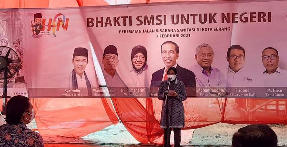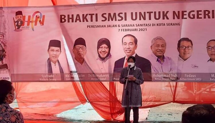 Serang | Sriwijayaterkini.co.id  – Menteri Sosial (Mensos) Tri Rismaharini memuji program Bhakti Sosial Serikat Media Siber Indonesia (SMSI) karena organisasi pers ini membangun peradaban melalui membangun jalan dan sarana sanitasi dalam rangka Hari Pers Nasional (HPN) 2021.