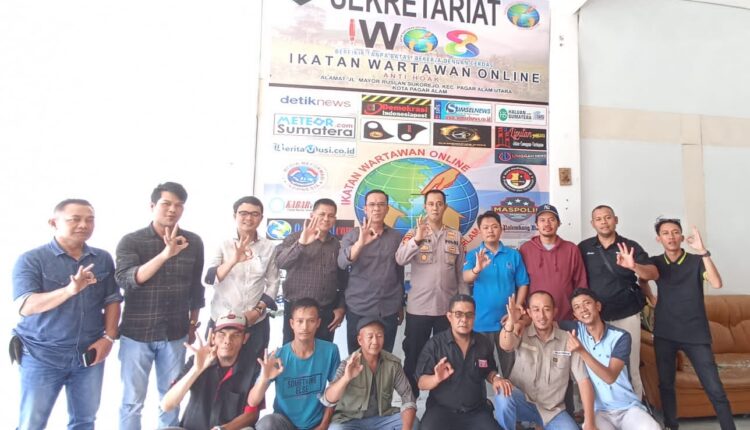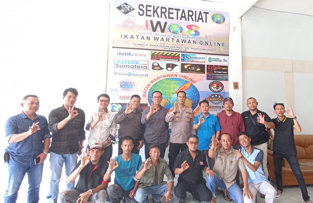 Bentuk sinergi Humas polres dan tiga perwira polres Pagar alam hadir di sekretariat (IWO) Ikatan Wartawan Online yaitu AIPDA Paino S. E PS. Kasubsi PIDM SI Humas Polres Pagaralam dan Kasi Propam AKP Heri Widodo, Kasat Reskrim AKP Najamudin, dan Kasat Narkoba IPTU Sutioso beserta Ketua Lembaga Investigasi Negara Helmi Hz.