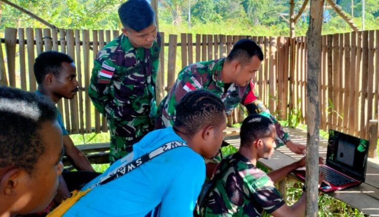 Isi Waktu Luang Anak Di Perbatasan Papua, Satgas Yonif 143/TWEJ Beri Bimbingan Belajar Komputer
