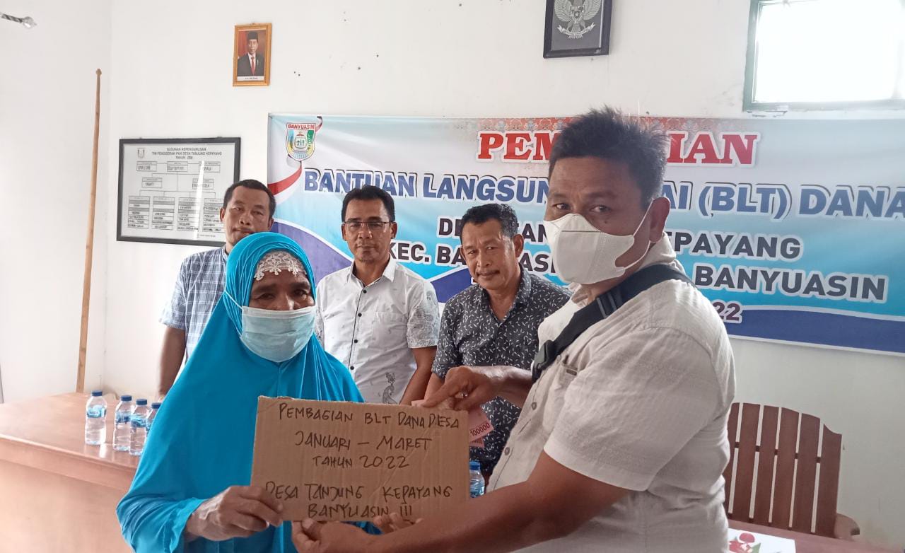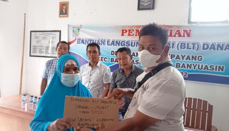 Banyuasin | Sriwijayaterkini.co.id – Pemerintah Desa Tanjung kepayang Kecamatan Banyuasin III Kabupaten Banyuasin salurkan Bantuan Langsung Tunai (BLT) Dana Desa (DD) Tahun anggaran 2022 kepada keluarga penerima manfaat (KPM) kepada ratusan Kepala Keluarga (KK) miskin, yang dipusatkan di Kantor Desa Tanjung Kepayang Jum’at (11/03/2022).