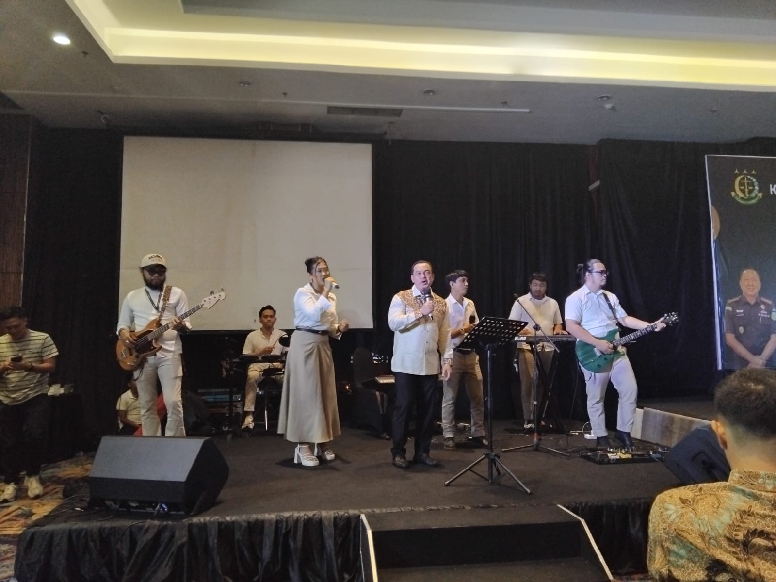 Dengan iringan musik yang merdu, Kapolrestabes menunjukkan suara emasnya, membuat suasana menjadi lebih santai dan penuh canda tawa. Para tamu undangan yang terdiri dari unsur Forum Koordinasi Pimpinan Daerah (Forkopimda), tokoh masyarakat, dan jajaran Kejari serta Polrestabes Palembang tampak menikmati suasana tersebut.