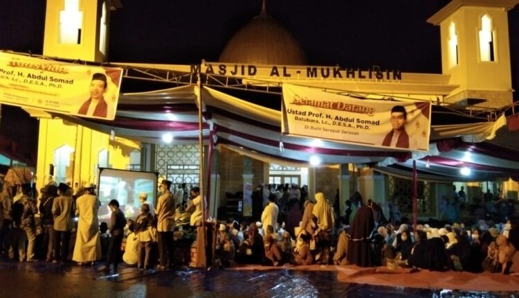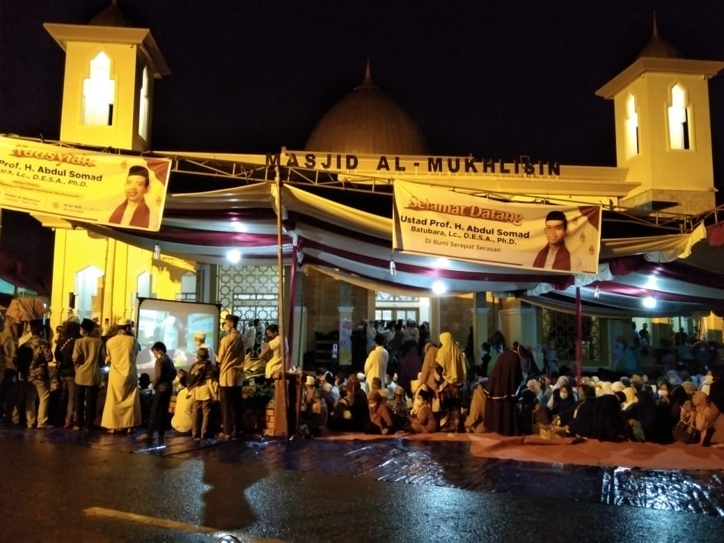 Meski Diguyur Hujan, Ribuan Masyarakat Padati Masjid Al-Mukhlisin Menyaksikan Ceramah Agama Ustad Abdul Somad