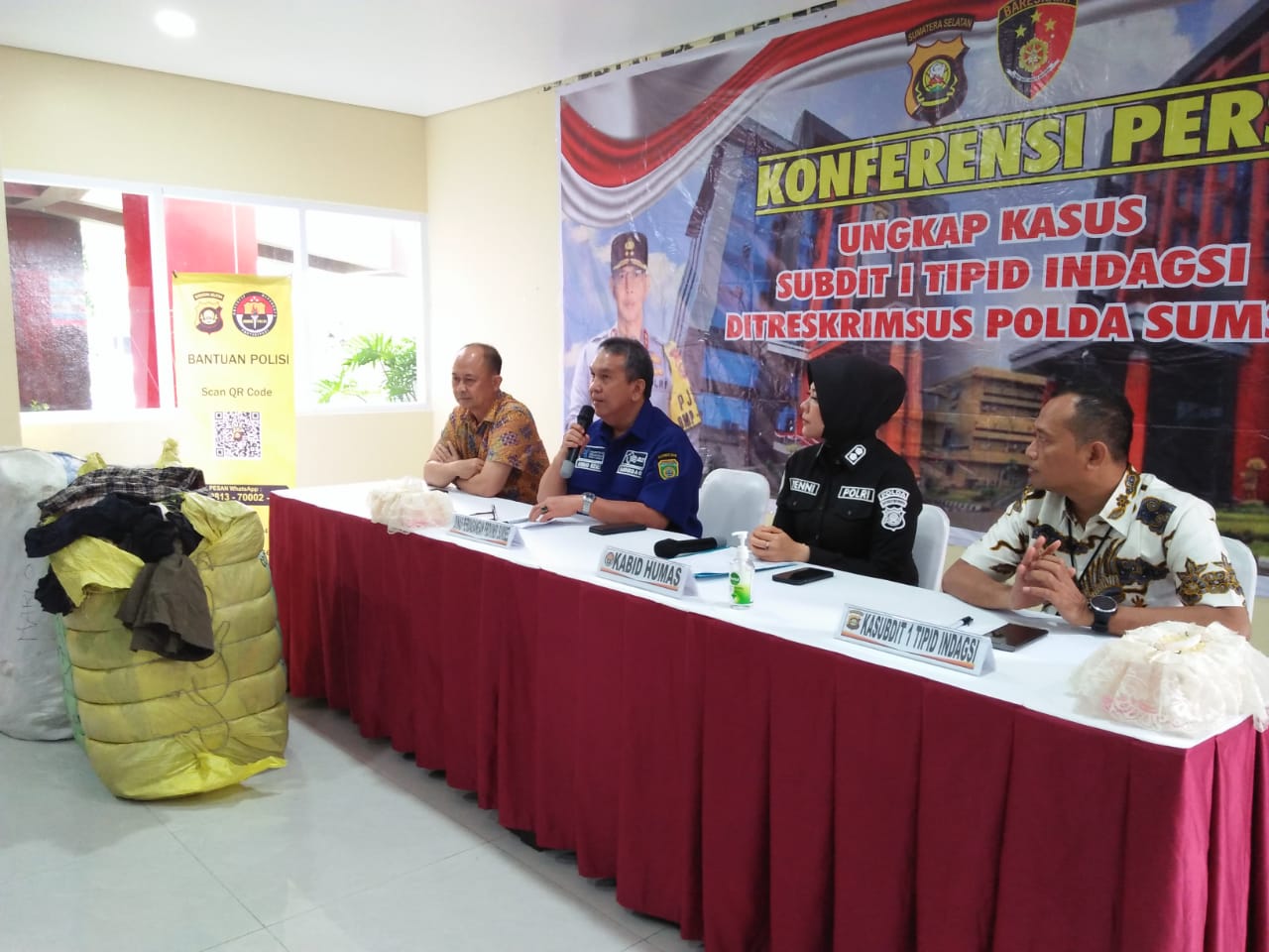 Kasubdit I Tipid Indagsi Ditreskrimsus Polda Sumsel, AKBP Hadi Syaefuddin didampingi AKBP Yenni Diarty mengatakan bahwa puluhan karung pakaian bekas tersebut di amankan dari lima lokasi di wilayah Sumsel.