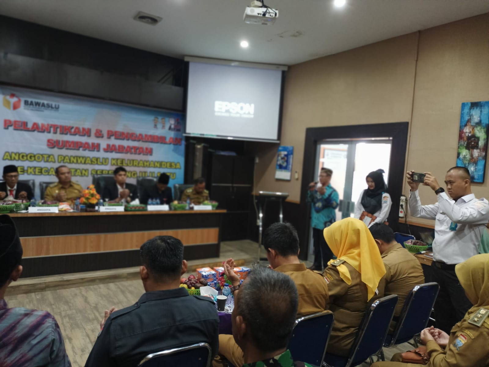 Pelantikan yang berlangsung di Aula Lt 3 Kantor Camat Seberang Ulu I Jalan KH Wahid Hasyim ini turut dihadiri Camat SU I Muhktiar Hijrun, S.STP, Kepala Sekretariat SU I, Hairul Efendi, SH, Komisioner Bawaslu Kota Palembang Eko Kusnedy, S.Sos, M.Si, Babinkamtibmas Polsek SU I, Babinsa Danramil SU I, Ketua PPK SU I M Soleh, Lurah se Kecamatan SU I dan Ketua PPS se Kecamatan SU I.