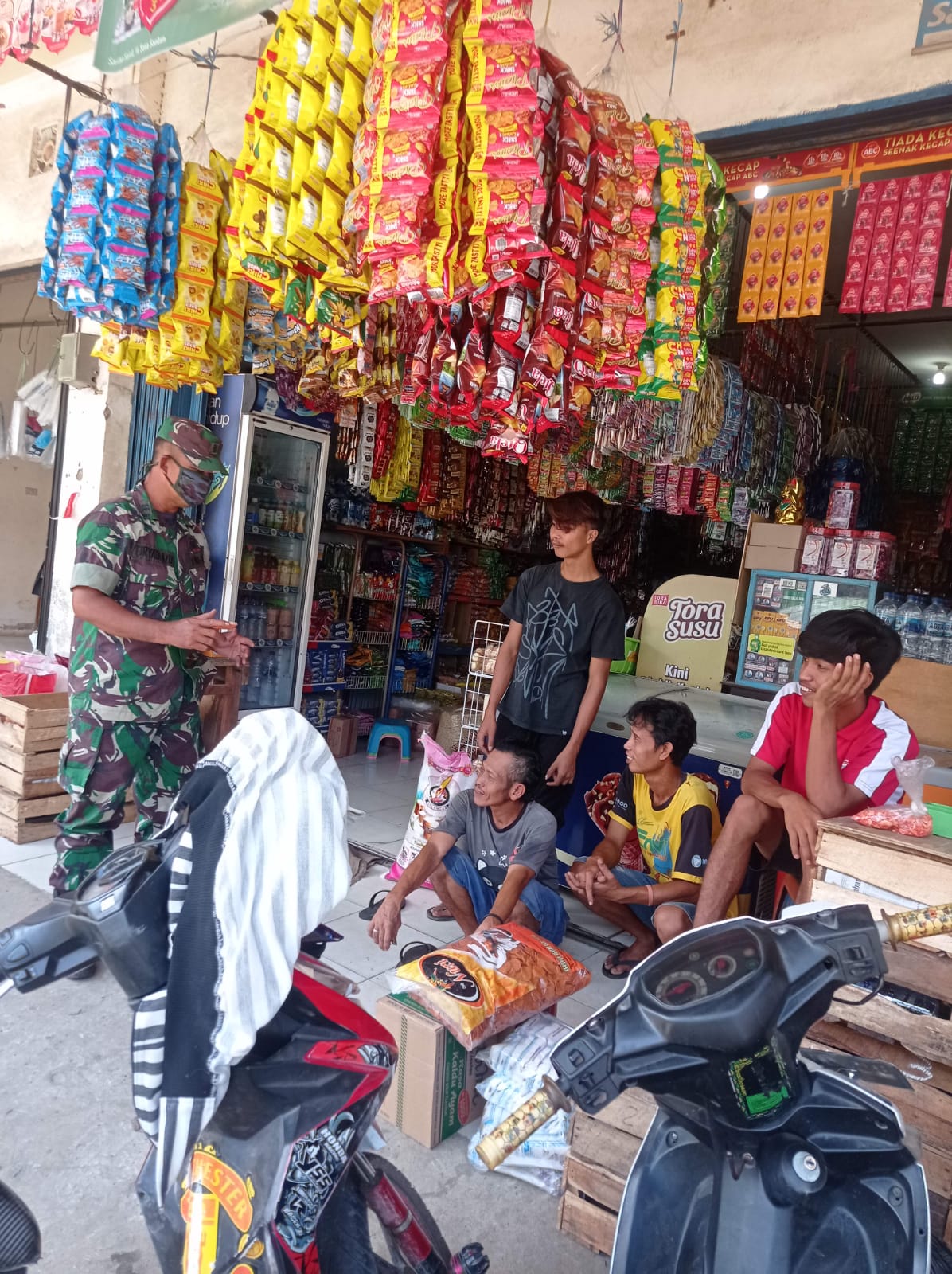 “Saya sebagai aparat kewilayahan terjun langsung ke lokasi dengan melihat secara langsung di lapangan masyarakat melaksanakan aktifitasnya sebagai buruh kuli pasar dan sebagainya,” ujar Babinsa.