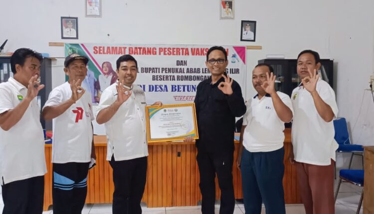 Desa Betung Barat mendapat piagam penghargaan sebagai Desa terbaik pada tahun 2021 dalam rangka peringatan HUT IWO ke-10 tahun.