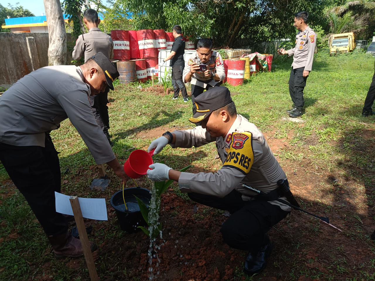 Kapolres Banyuasin AKBP Ferly Rosa Putra SIK mengatakan Kegiatan penanaman pohon dengan cara serentak ini dilaksanakan, merupakan bentuk kepedulian institusi kepolisian RI khususnya polres Banyuasin untuk melestarikan alam, mencegah terjadinya banjir dan menjaga habitatnya serta mencegah terjadinya Polusi udara.