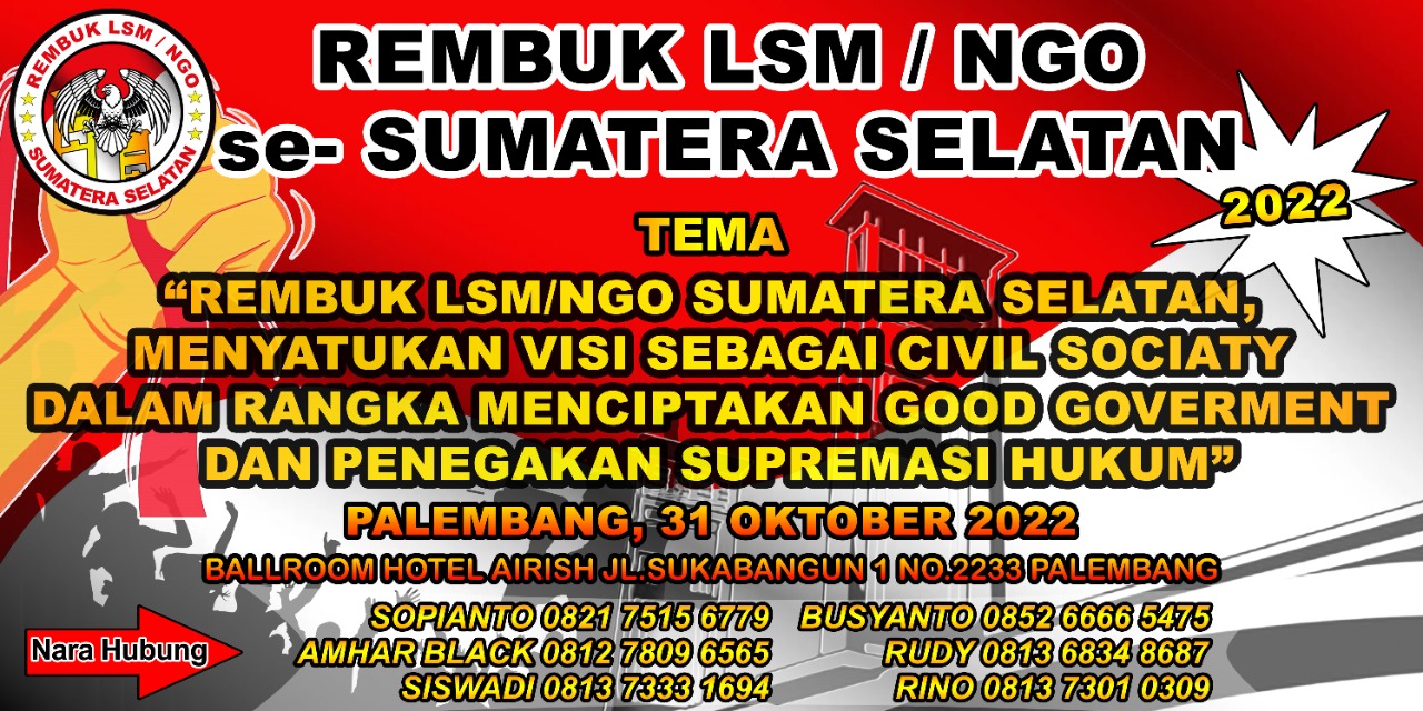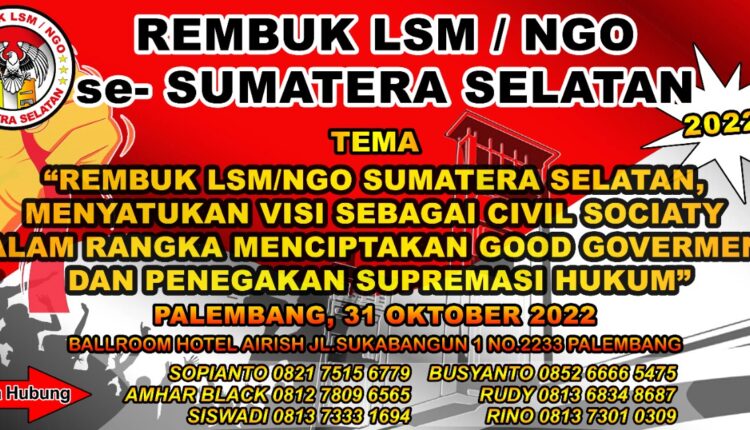 “Berangkat dari hal tersebut kami segenap panitia rembuk sepakat mengusung tema kegiatan ini. Rembuk LSM/NGO se-Sumatera Selatan, menyatukan visi sebagai Civil Society dalam rangka menciptakan Good Goverment dan penegakan supremasi hukum,” tegasnya.