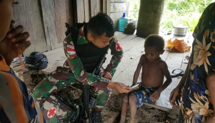 Satgas Yonif 143/TWEJ Bantu Tingkatkan Kesehatan Masyarakat di Perbatasan Papua