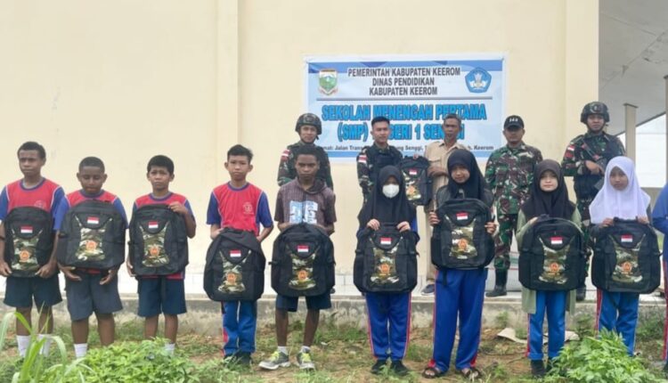 Palembang | Sriwijayaterkini.co.id – Hadirnya TNI harus memberikan manfaat bagi masyarakat, hal ini ditunjukkan Satgas Yonif 143/TWEJ Pos Kotis dengan memberikan bantuan perlengkapan sekolah ke SMPN 1 Senggi Kampung Senggi, Distrik Senggi, Kab. Keerom, Papua, Selasa (10/1/2023).
