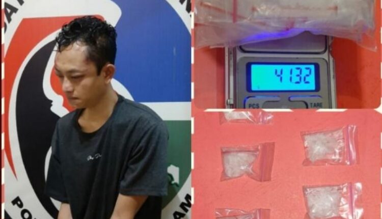 “Kemudian di lakukan pemeriksaan dan di temukan barang bukti berupa 9 ( sembilan ) buah plastik klip bening yang berisi butiran- butiran kristal bening yang diduga narkotika jenis Shabu dengan Berat Bruto 41.32 Gram. kemudian anggota set narkoba mengecek kerumah nya mengamankan 1 unit hp merk samsung di dalam kamarnya dan (satu ) unit motor Yamaha Mio,” ungkapnya.