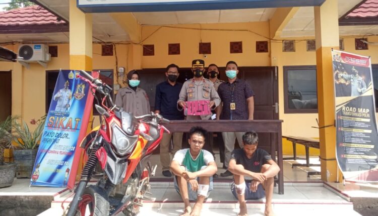 Kedua pelaku yang masuk dalam daftar pencarian orang (DPO), ditangkap saat asyik nongkrong di Simpang Tiga Talang Tumbur. Selain itu, di amankan pula 6 unit kunci T dan 1 unit sepeda motor.